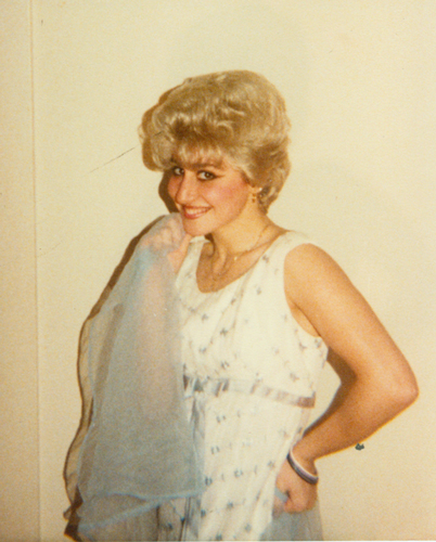 Lisa Eicher as Susie Bubbles in a vintage prom dress