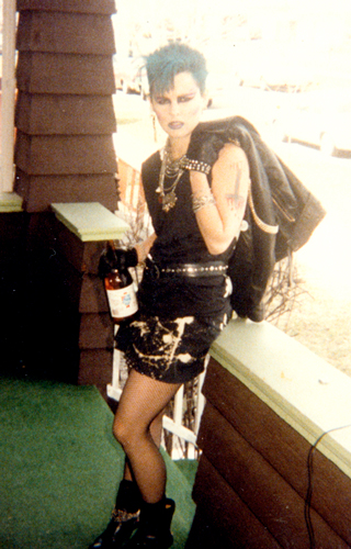 For some reason I gave myself a starring role as well; I don’t know why… I can’t stand to see or hear myself onscreen, I am most certainly NOT a good actor by any stretch of the imagination, and it also makes it more challenging to direct and shoot a scene if you are in it yourself. My part was a riff on myself… I was a 19-year-old virgin, and super-queer but not admitting it. So I wrote myself the role of the Sex Bomb, an extremely promiscuous nymphomaniac. Because, ya know, I would know all about such things. I wore red lipstick, had bleached orange-y blonde hair, and had just gotten braces which made my lisp even more prominent. I didn’t really have to admit my queerness I suppose. It is cringingly obvious onscreen to even the most casual viewer.