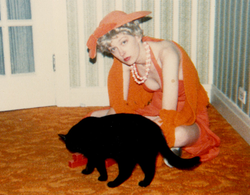 Next up, Ginger had to have a starring role. I wrote her the pivotal role of Betty Bubbles, the innocent country girl who comes to live at her aunt’s boarding house, and winds up being corrupted. One mistake that wouldn’t happen again was Ginger’s ever-changing hairdo over the long shoot. I hit the wonderful wig shops on Howard Avenue and found two versions of blonde that were very budget friendly and would represent Betty in her different phases. We thrifted some wonderful outfits for Betty, and Ginger wore them well.