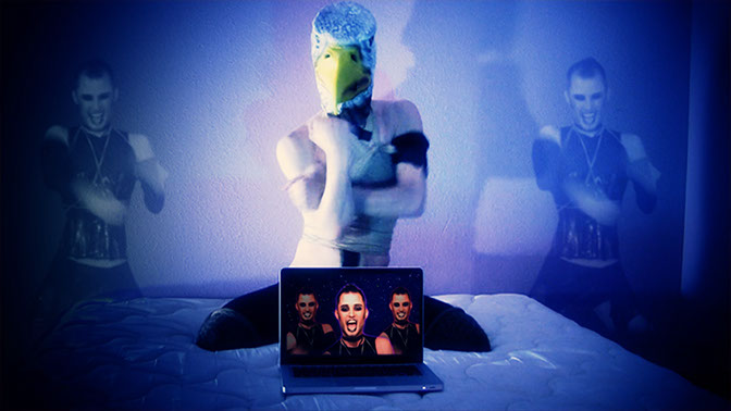 Eagle mask... I don't know, it was Cheeks' concept. But the filming and lighting here, all me.