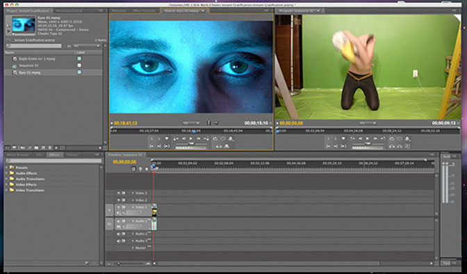 We shot everything in one day at the beginning of 2010; he had three makeup changes, we did a TON of shots in front of our makeshift green screen (a green wall in our living room, with a green tablecloth on the floor). It was a long, laborious day, but I loved so much of what we got out of it. At the end of shooting, Cheeks mentioned some of the FX he would like me to do… it wasn’t my forte at all, but I was game. Then he told me he would like to premiere the video online in a week. “Not happening,” I replied. Not only was I learning my way through the effects (including keying out green screen footage, which I had never done plus it wasn't the best green screen to key from), but I was working full time at a job where I had to be at the office at 2:30 in the morning. My schedule was crazy to say the least.