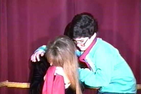 Afterward it all slowly began to fall apart. I got the film back from processing; it looked decent, and Pam’s additional video footage at times captured the scenes even better. I got the film professionally transferred, and was ready to head into video editing. Then the guys who were putting the evening of programming together, the ones who owned the video editing facility, informed me that I could use their editing equipment… at the going customer rate. I had never edited on video, and knew that there would be at least a learning curve, which was going to add up pretty quickly. If I recall, the rate they quoted was $45 an hour. Maybe that was good… but since I wasn’t counting on it, and had already spent hundreds on the film, processing and transferring, hundreds on insurance, had fed the cast and crew who volunteered… it just stopped making financial sense. I was doing this as a donation thing, but I had my limits as it was all coming out of my own pocket (and contrary to any opinion, I was not making that much money at the time). I felt hoodwinked and helpless. So I pulled the plug on the project.