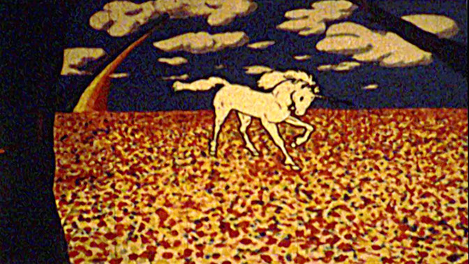 Some of the other kids in the art class worked on the backgrounds, I don't think I drew this unicorn... and we all painted the millions of cels used to create the short