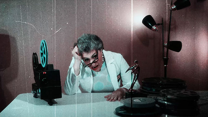 Obviously it was never going to cover everything that was underground film. It was just intended as a showcase for our campy projects, culminating in the big premiere of N25. I knew how I wanted it to look, but writing out a script talking about myself in third person was more challenging than I thought. Tony volunteered to write it… it is a little different tone than my own stuff, but goes well with what we had to show. I asked our friend Amanda Cohen, whom we have known for decades but who has never been in one of my projects, to star in all of the wraparound footage as “Dr.” Glenda Gershenson, the expert on Underground Film.