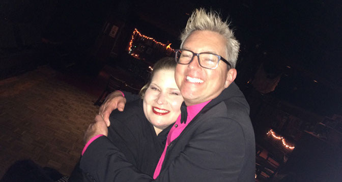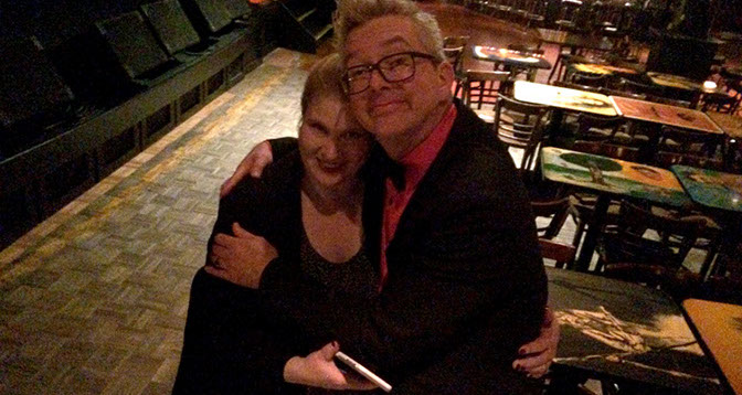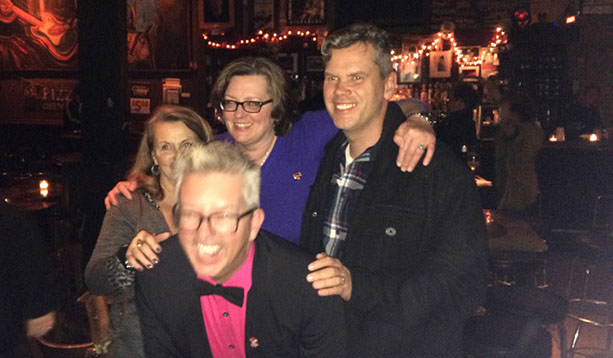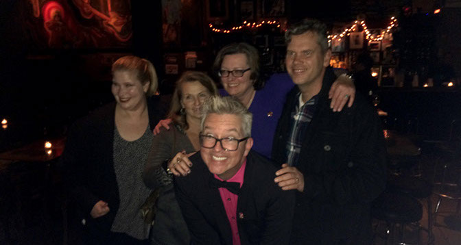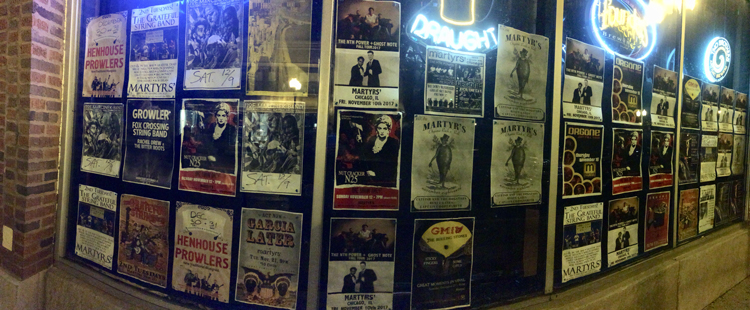 Great sweeping view of the exterior of Martyr's in Chicago, with our poster for the evening front and center
