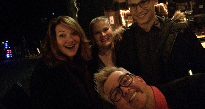 Most of the Larson siblings, in one place. Clockwise: Donna, Linda, Scott and me