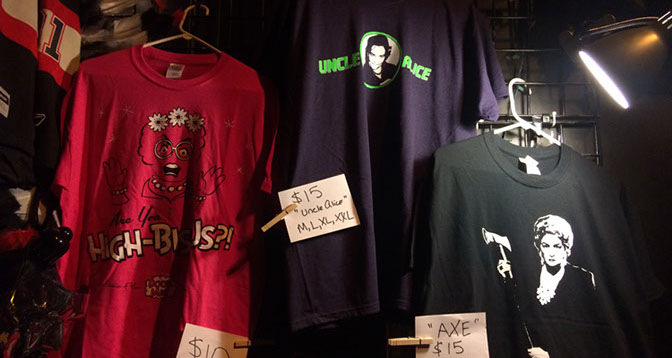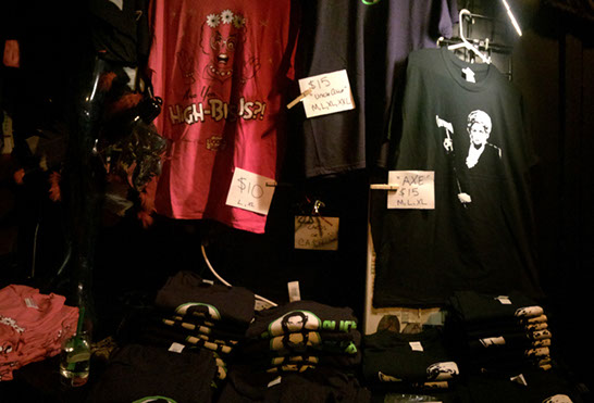 The merch table... we had three styles of shirts, a set of buttons from N25 and Linda’s book available